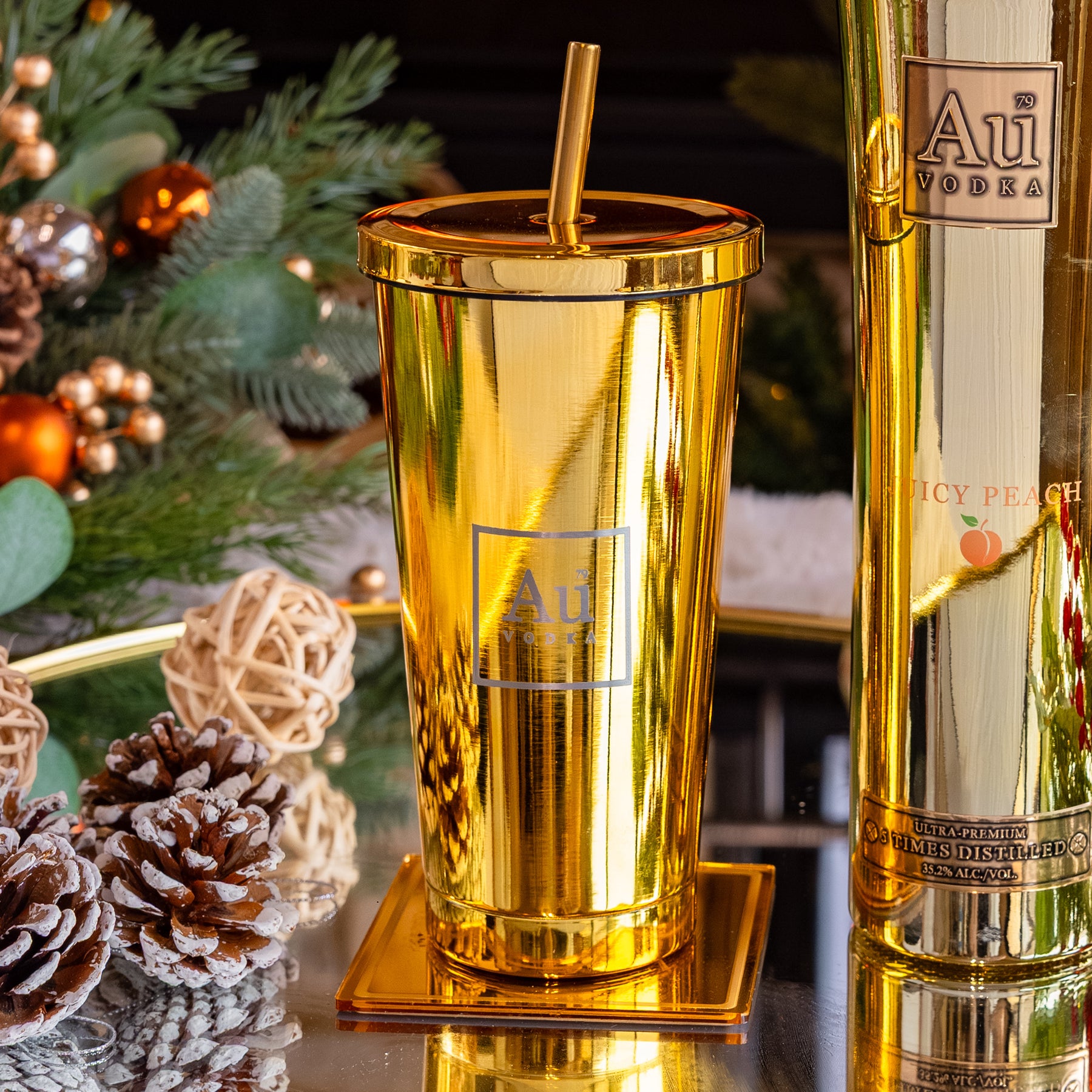 Perfectly designed for mixing and serving refreshing slush-style drinks, this gold-finished cup features the signature AU Vodka branding, bringing a luxurious touch to your cocktail game.